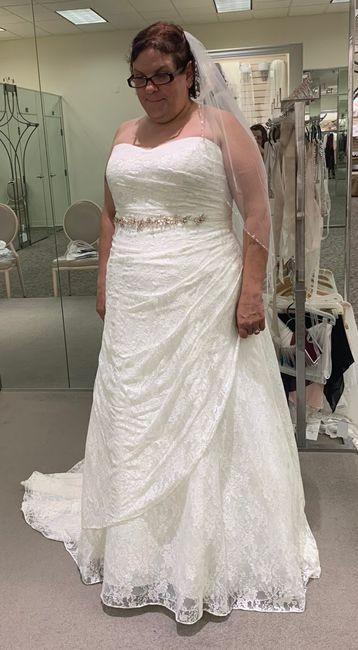 Covid and some other stuff has got me down. Cheer me up by posting pics of YOU (not a model, it's too fake) in your dress? It would be a nice lift. Here's mine at my final fitting and one getting ready with my girls on game day.See that bridal stress...