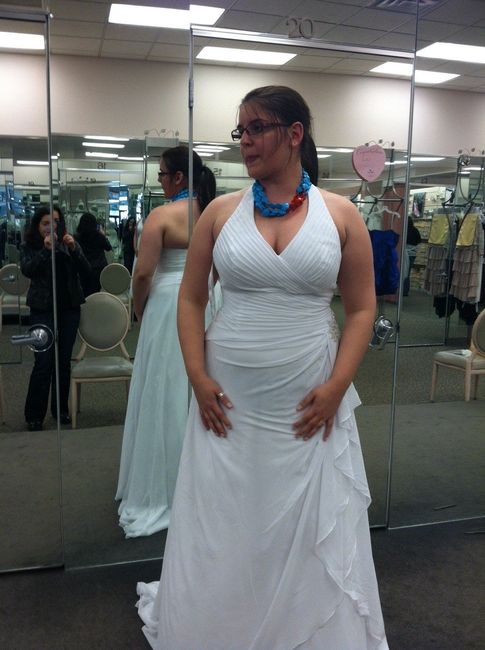 I need help! I bought a halter wedding dress and am unsure what type of necklace (if any) I should wear. Should I wear a statement bracelet with stud earrings?