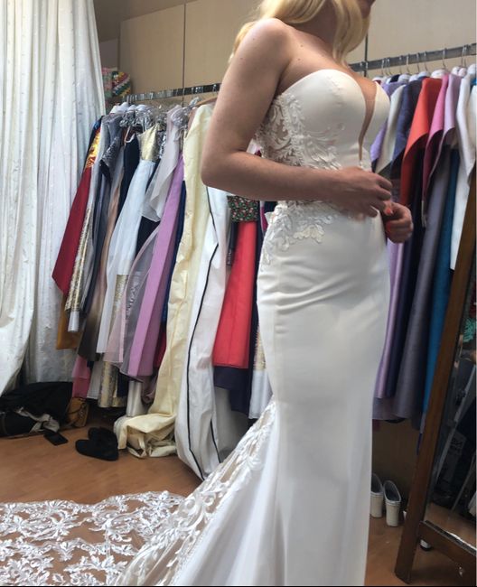 I fell in love with an Enzoani gown and I had tried on a size 6 knowing it needed to be altered and there was a bit too much fabric. The store said that I really had to buy a size 4 and it was true to my measurements and could be let out in the areas...