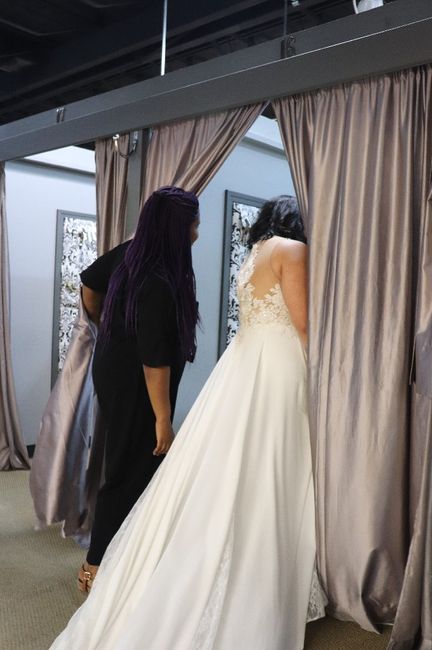 I am so excited! I almost went with the dress I tried on before this... I asked them if they had another similar to what I had on, and she went and got this! This dress was actually the very first dress I saved when I was browsing online a few months...