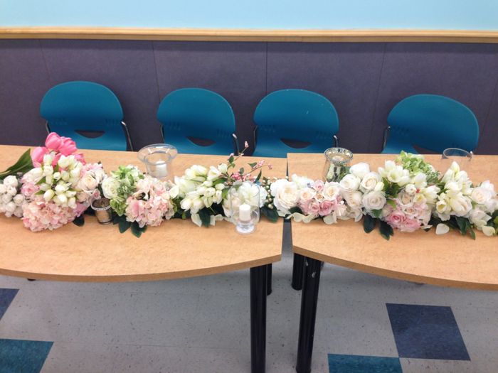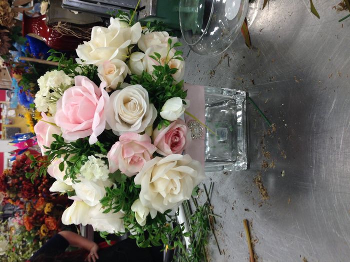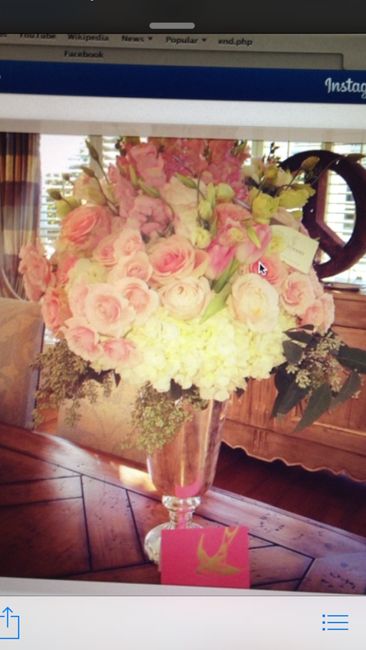 Soooo I had my first floral centerpiece made which will be going on my round tables, and I wanted your ladies thoughts on it?!? I will be having tall centerpieces with the same floral arrangement on my long rectangle tables. Ps. THERE FAKE FLOWERS ...
