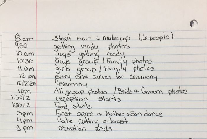 Anyone with a 12:00 ceremony start willing to share their timeline? I am trying to create mine but I have no idea how early we should start. For reference, I am the only one having my hair and makeup done (my mom and I are tag-teaming my 3...