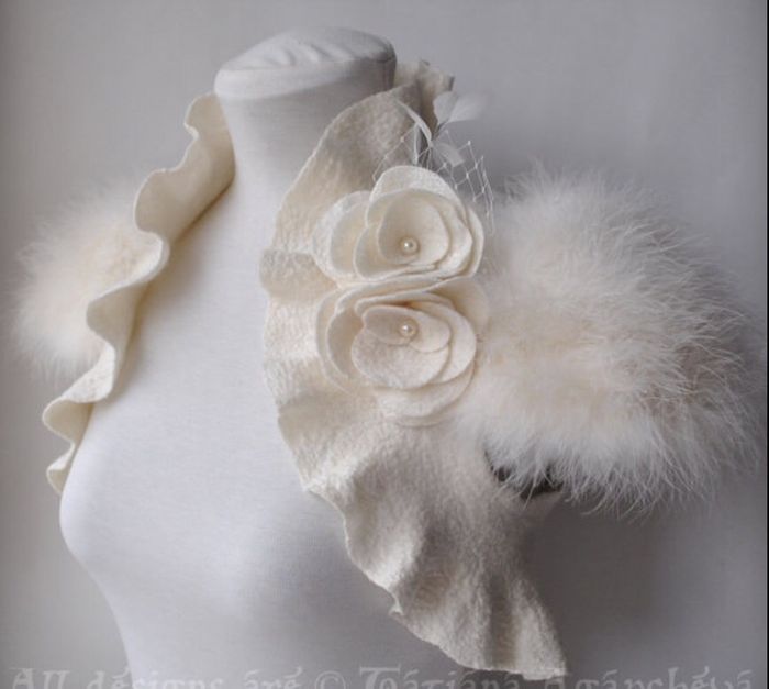 2466 days agoSo, I’m feeling shy about my body in my wedding gown, so I’d like to wear a bolero or a shrug with it. My wedding dress is ivory with a lace overlay over a plain underneath lining and what looks to be pewter color beading. I’d love to wear a gold...