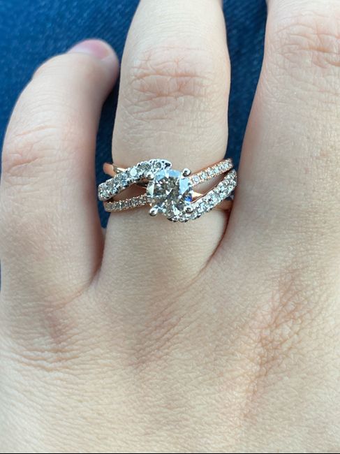 I love my engagement ring! It’s a rose gold metal, morganite pink stone, and a diamond band! It’s extra special because my mother who is a jeweler made it for me❤️ Share your rings! Can’t wait to see!