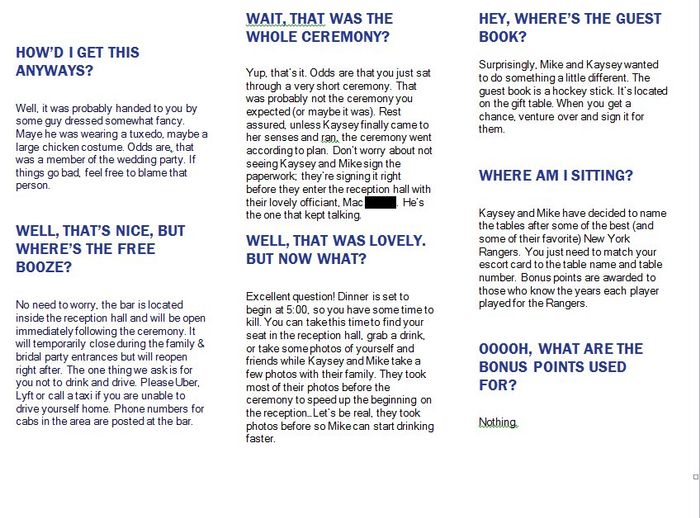 Hi! Am I making a huge mistake? We aren't planning on programs or a sign version of a program. We have a website (which has only info about the wedding and us - nothing about wedding party), and a welcome sign that just says our names and "Welcome to...