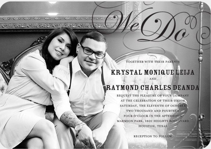 I was online creating STDs and asked FH for his opinion. We started working on invitations and he really likes the one I've attached. I am not sure that we should use a pic for the invite. I am using one for our STD but I always thought the invites...