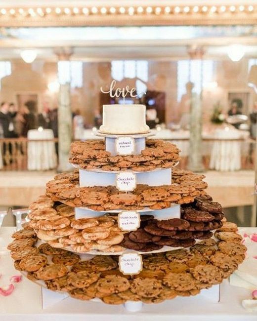 What is everyone's idea of a cake topper and then for the guests cookies? Variety of different flavors. Basically instead of cake of cupcakes, cookies. Like this picture. Photo credit to pinterest.