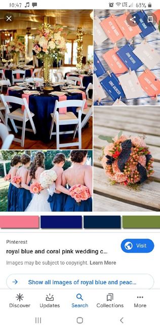 Help we have desided we want royal blue for our color but were trying to figure out what colors goes with royal blue. So not sure what color dresses our braidsmaids and Moh should be. ??