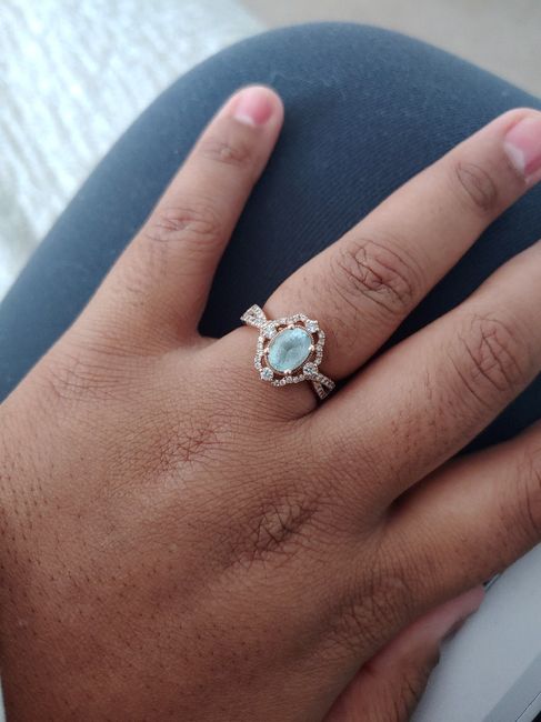 I love my engagement ring! It’s a rose gold metal, morganite pink stone, and a diamond band! It’s extra special because my mother who is a jeweler made it for me❤️ Share your rings! Can’t wait to see!