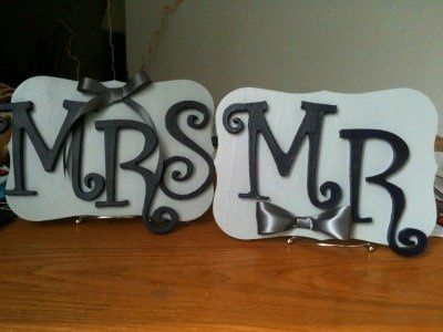 I've been on this DIY kick lately so I decided to do Mr. & Mrs. signs this weekend. Got all the materials from Michaels, except for the metal stands (Wal-mart). There were some paints laying around my place...thanks to my sister. You may not be able...