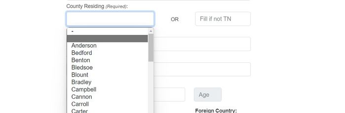 Hi everyone! My fiancé and I plan to get married in Tennessee but do not live in Tennessee. There is a wedding application to fill out online, however there's a hiccup. It won't allow us to submit the form because it has you select the county in...