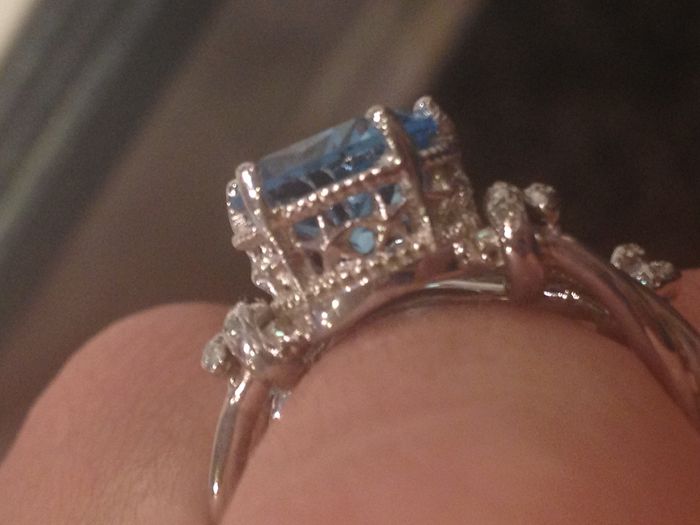 We were finally able to pick up my engagement/wedding ring on Saturday! Better than I expected. Lonestar cut topaz (Texas cut) wrapped with barbed wire and diamond accents.....just my style. FH was able to try on the wax casting of his ring as well....