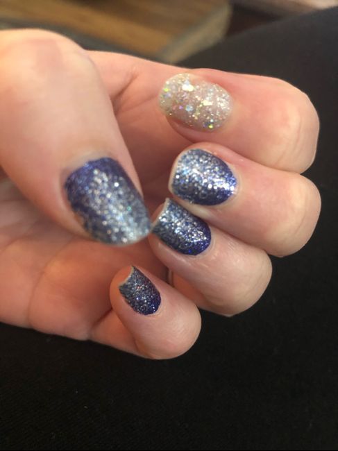 I’m not a big nail person so deciding on my wedding day nails has been challenging. I have nice nails, they are strong and healthy and grow pretty nicely. I currently have color street polish on them (blue picture below are my nails so you can see...