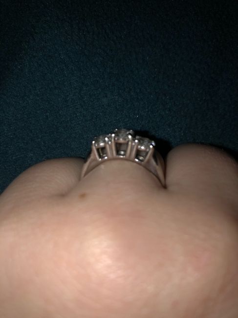 I love my engagement ring. My fiancé picked it out after some ideas from me. But now we’re picking out wedding bands and the bands I really like don’t look good. Any ideas? I don’t want it to look too masculine.