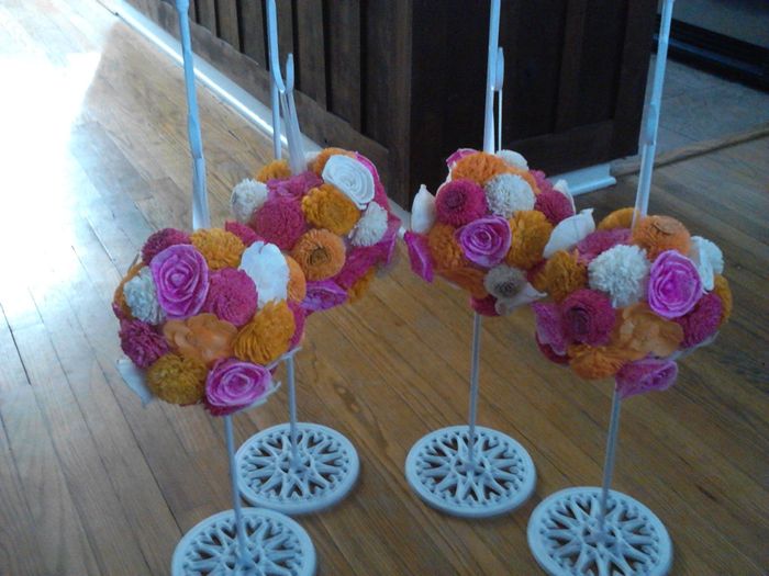 So in a post about a week ago I showed off sola flowers that I had dyed. We finally finished dying all of our sola flowers both pink and orange and we left some the natural cream color. Last night I began to assemble the pomanders. Have 4 done, with...