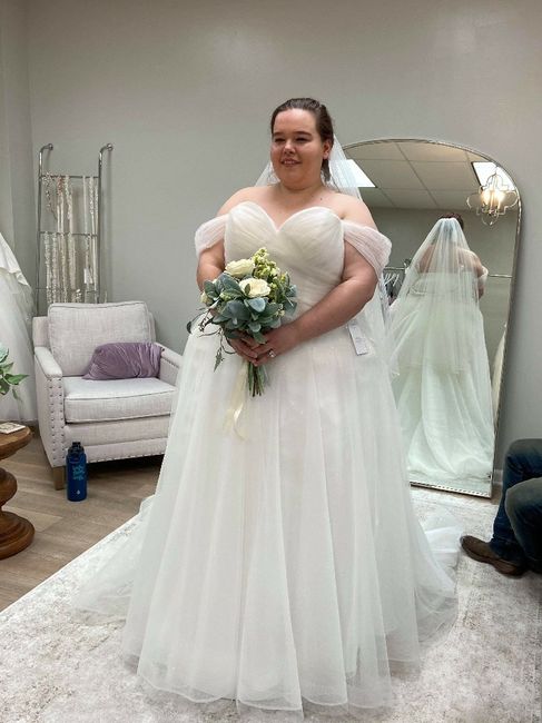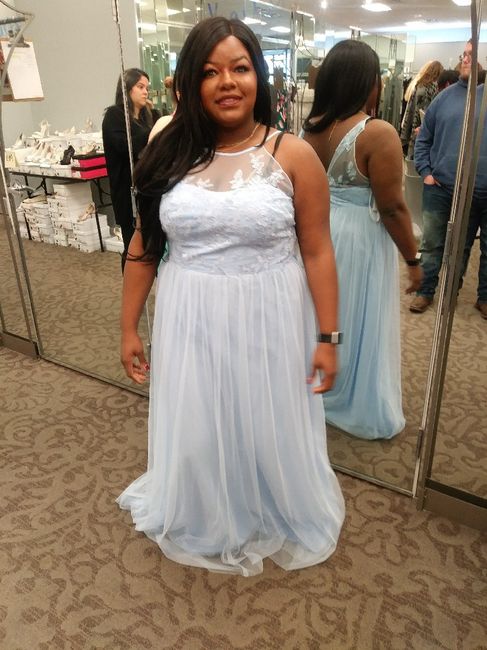 So my girls and I took a second trip to David's, and we found these! We also found my momma's dress! The first picture is my bridesmaids dresses- the off the shoulder dress is my matron of honors dress and the other is the bridesmaids dresses, and...