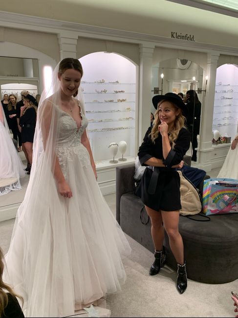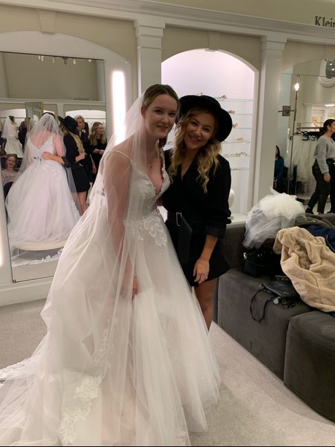Covid and some other stuff has got me down. Cheer me up by posting pics of YOU (not a model, it's too fake) in your dress? It would be a nice lift. Here's mine at my final fitting and one getting ready with my girls on game day.See that bridal stress...