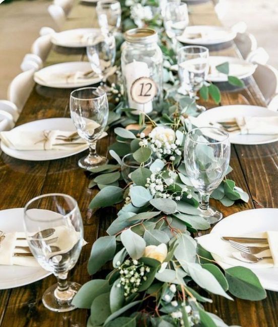 The style of our wedding decor is rustic with more greenery rather than an explosion of flowers because we all know flowers are super expensive. Is fake greenery frowned upon? Centerpiece idea