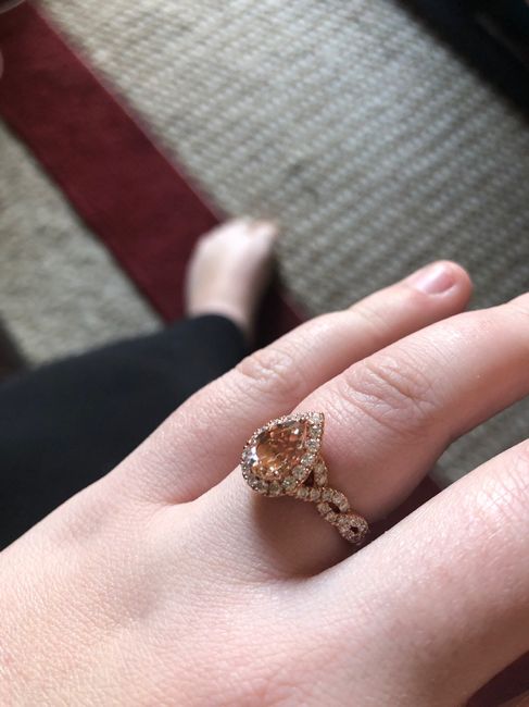 I love my engagement ring! It’s a rose gold metal, morganite pink stone, and a diamond band! It’s extra special because my mother who is a jeweler made it for me❤️ Share your rings! Can’t wait to see!