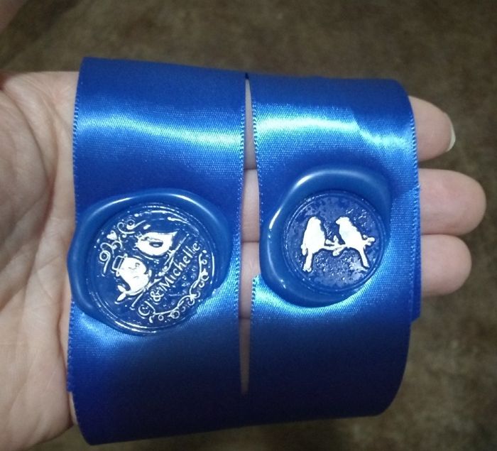 We didn't realize that our custom wax seal stamp had a whale for the groom instead of a bird. We ordered it from AMZDECO (it took ages to get here from China). We decided to use it anyways. It'll be a funny story for anyone who asks! The other stamp...