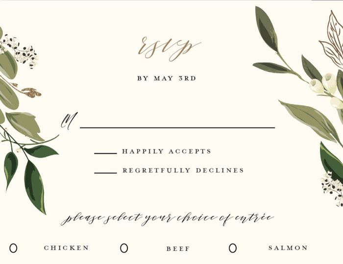 This might be a dumb question but I am currently finishing up the details for our invitations and card inserts. Here’s a pic of what they currently look like. I am wondering if I need to include like “___ number attending” as most of the cards are...
