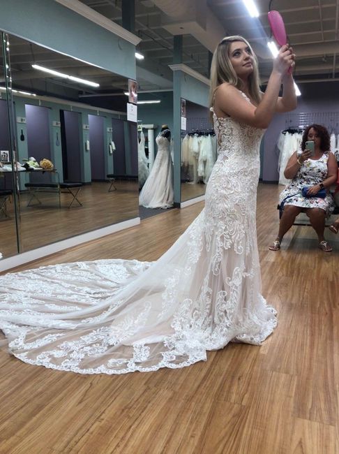 I left my dress at a fabric shop today and wanting to get other people’s opinions. I don’t plan on shortening the train because I really do love everything about it. However, at the bridal place I had 4 inch wedges on and the length of the dress was...