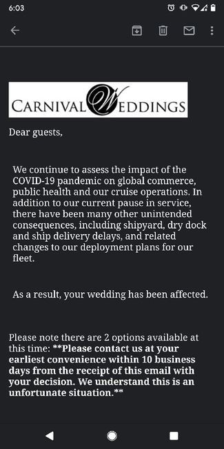 I had originally decided early into our engagement to go with a cruise wedding and quickly booked an embarkation wedding with Carnival Breeze for November 2020. I paid for the cruise then I paid for the classic gold wedding package (all in at this...