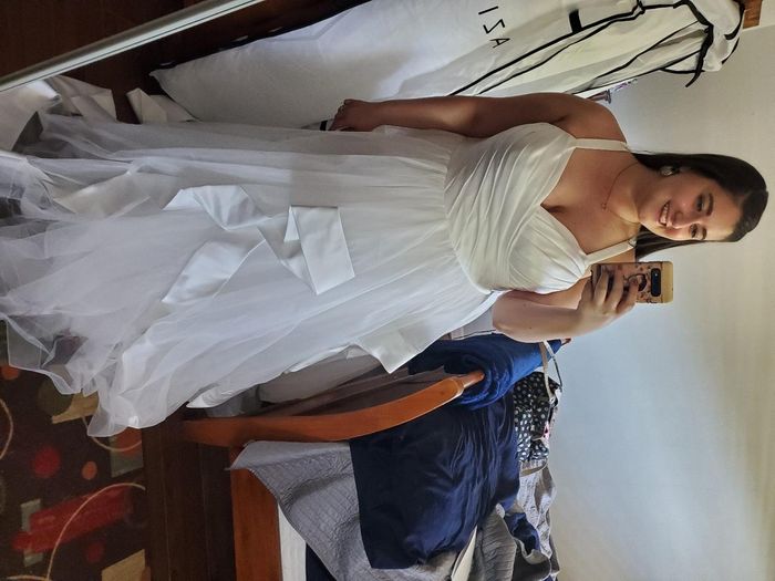 This is my dress (a sample, but this is the style I'm ordering). I also have a rhinestone belt to go with it, but I'm completely lost as to what jewelry I should wear! My hair will be up if that helps!