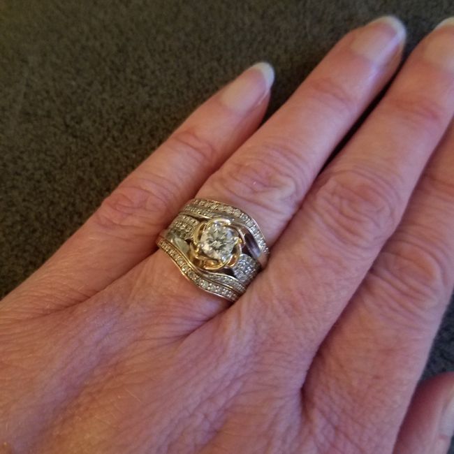 I want to see your wedding bands and engagement rings! If you haven't bought your wedding bands yet I want to see your ideas Here is my engagement ring and the wedding band I am interested in but haven't bought yet.