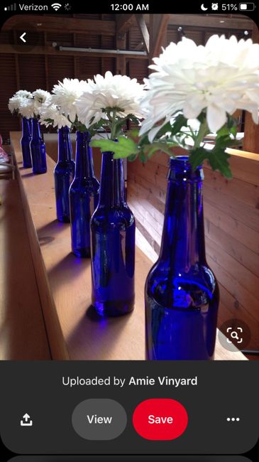 My decor is inspired by my Grandma’s antique cobalt blue glass collection. I will have blue glass bottles on the tables and some greenery like eucalyptus. I’m having trouble deciding if I should stick to all white flowers, or if I should add a color....