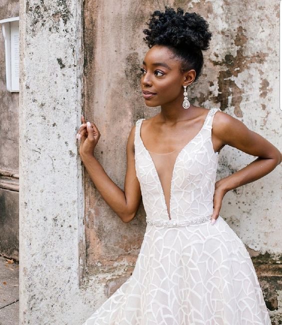 I have two dress possibilities from David's Bridal. I won a dress in their Instagram contest for frontline workers. Part of my problem in choosing is that I'm in love with a designer dress that (Thanks to COVID) I can no longer afford. Dress option...