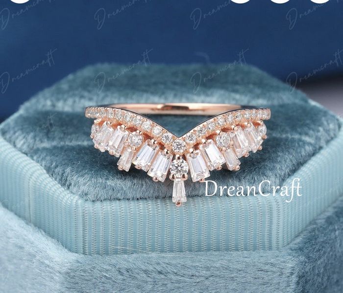Hello everyone! We’re looking at wedding bands next week and I’m so excited! I want a set that stacks well with no extra spaces between rings. My engagement ring is pear shaped on a high setting so I am hoping anything I choose will rest nicely...