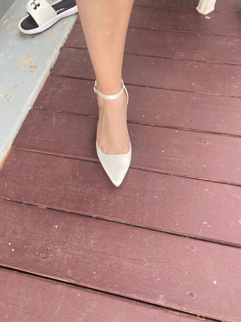 I wanted cute, low, block heels for my outdoor ceremony but didn’t want to spend a million dollars, so I found some plain white heels and spruced them up a bit. What do you think?