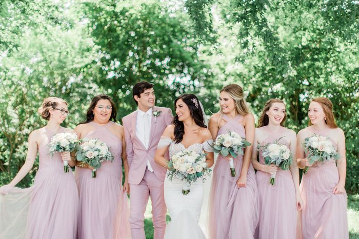 SOS. I am someone who loves uniformity so I am dead set on my man of honor matching my bridesmaids. He's excited to be wearing a pink suit too, BUT.... I have no idea where to get his suit that will match the dresses. If he's not wearing the same...
