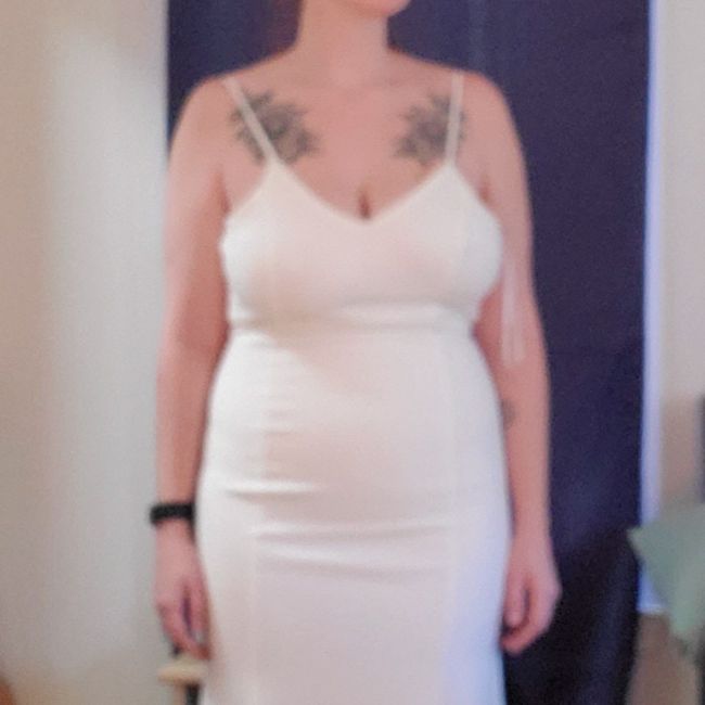 I ordered a dress I adored online and I am having a really hard time being okay with it on my body. I know these pictures are poor quality but it gets enough of the message across. The girls arent taped up right wither, but, is it as awful as I think...