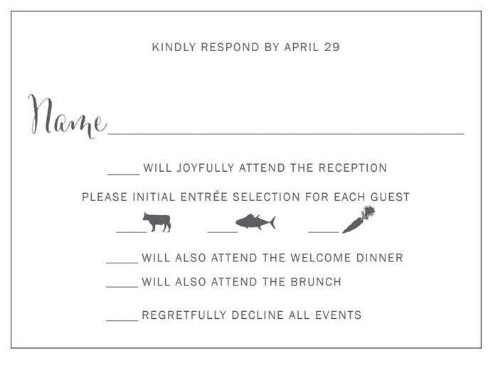 about 90% of our guests are from out of town and so basically everybody will be coming to the rehearsal dinner. But we need a head count for the restaurant ahead of time. What is the proper way to do this? Can I include it on the bottom of the...