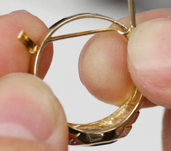 My E-ring is white gold with a .76 ct round diamond with 14 small diamonds up along the side. My wedding band matches my E-ring with small diamonds running along the entire front. In case people are wondering what those little metal things are on the...