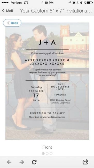 Hey everyone- We are moving into the invitation part of wedding planning. We need to order those bad boys soon. So I've been messing around with different invites and picked this one. I'm in need of some grammatical criticism, as well as picture...