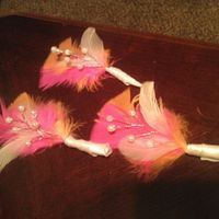 4560 days agoI decided for my vendors that i would like them to have a different style bout. than the bridal party/family/officiant. so i made a trip to hobby lobby and this is what i came up with!!! just gotta finish wrapping them and they are done!
