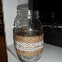 4630 days agoI've been busy working my butt of doing DIY crafts.. here are some end results. 1. main mason jar centerpiece (15 total) 2. candle votives. (18 total, will go to the sides of the mason jars) 3. twine wrapped (beer/wine cooler) bottles with flowers...