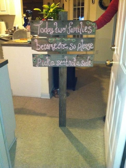 Here is my first wedding sign that my fiance and I made! The best part is....it was FREEEEEEEEEEE. Picked the wood up from the side of the road and I already had some paint laying around.