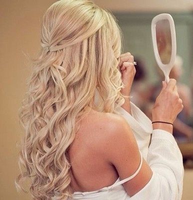 I need some ideas please. FH wants my hair down. I have naturally curly shoulder length hair. I will be wearing a veil and I have a ribbon headband that I can wear if the style fits it. Go.......