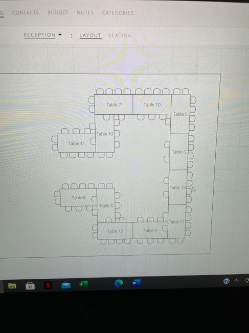 So FH and I aren’t fans of having a bunch of separate tables so I’ve been trying to come up with a floor plan that has them all (mostly) connected. It’s especially important since there are quite a few big families that wouldn’t all fit at a single...