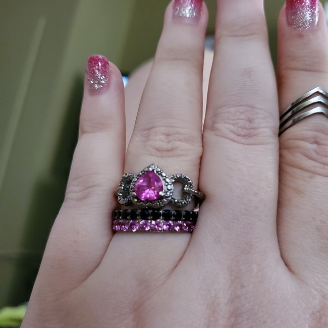 I love my engagement ring! It’s a rose gold metal, morganite pink stone, and a diamond band! It’s extra special because my mother who is a jeweler made it for me❤️ Share your rings! Can’t wait to see!