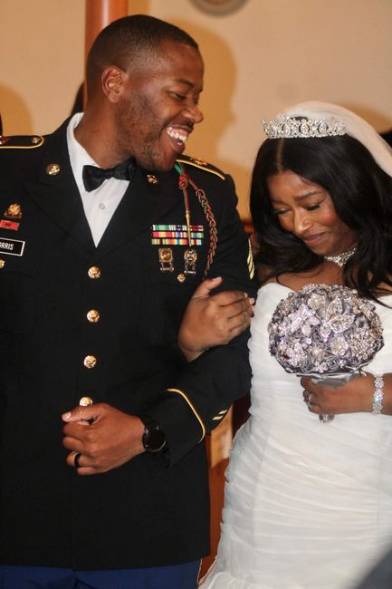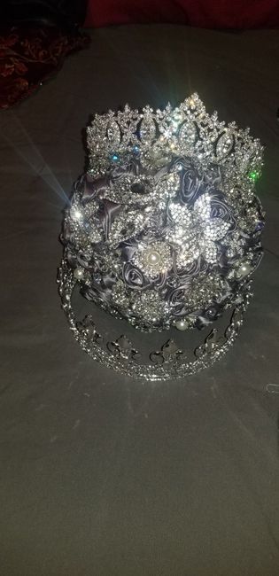 This is me my bouquet and our crowns I still look to make sure that I'm not dreaming