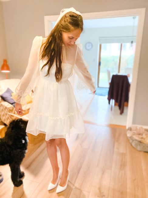 Alright ladies. DP and I are eloping in one month (eeeeeek!!!). What do we think of the dress? Think it needs hemming but otherwise fits ok? How should I wear my hair? Any other suggestions/advice?