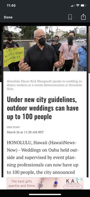 We've been planning our "destination" wedding on O'ahu (we met in college at UH Manoa) since before the pandemic. We decided that we're going to keep our date no matter what, and either elope or actually be able to have guests celebrate with us. Now...