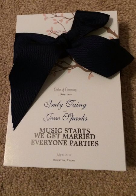 I am planning to make my own invitations and programs but I'm not sure what all goes on the programs. I would like to keep it to one page and my wedding is going to be a simple country wedding.