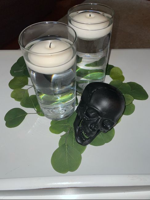 Opinions on our centerpieces... our wedding is October 28th, and wanted to sprinkle in some Halloween. (It’s my birthday I have to 😇). I wanted to keep it simple, our colors are just black and white 🤷🏽♀️.