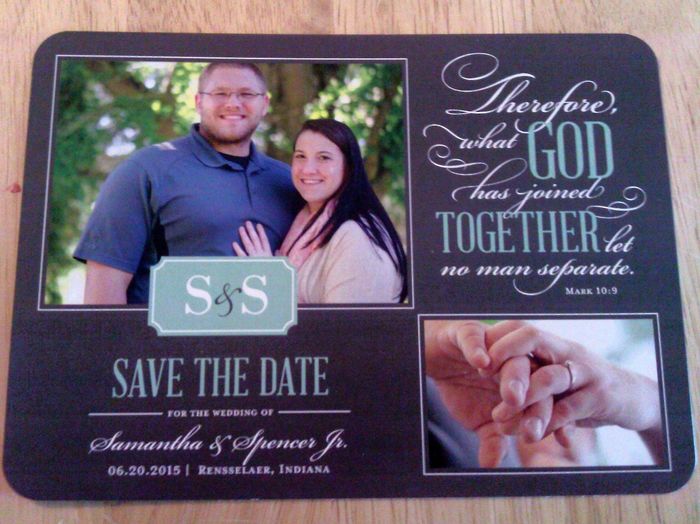 Alright ladies! I'm following up with my Save the Date posts to say I finally got in our samples today! I absolutely LOVE them! Kudos to my FH for making some big decisions on these because I did not know what I wanted! He did a wonderful job! ...